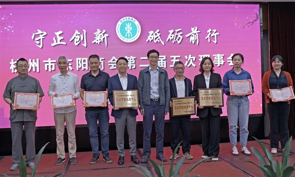 5月22日,常务副会长申屠祖斌对荣获东阳市乡贤联谊总会的2022年度突出贡献先进个人和先进个人颁奖