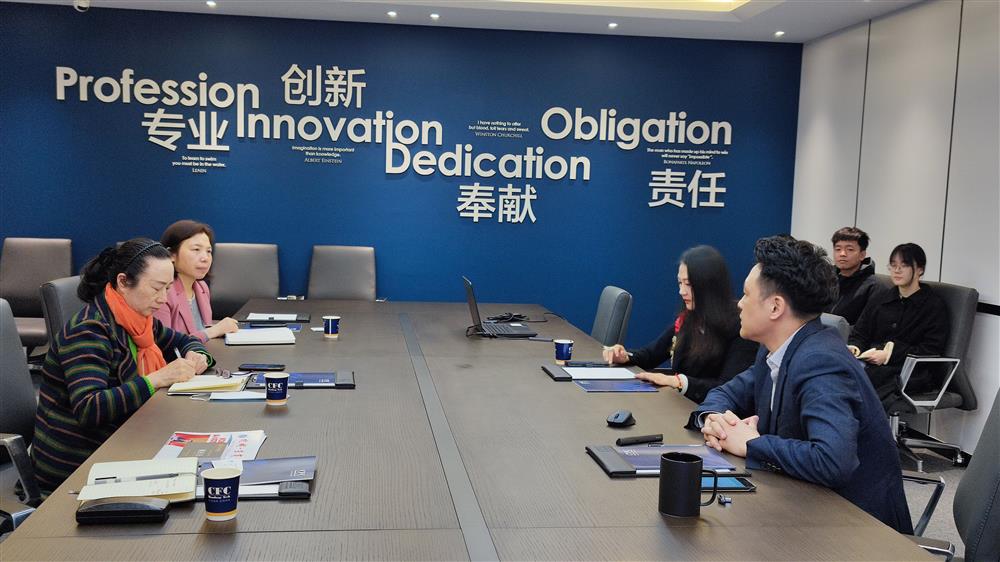 4月8日下午,秘书处走访浙江华洋缝制杭州总部,与总经理徐朝良等座谈交流
