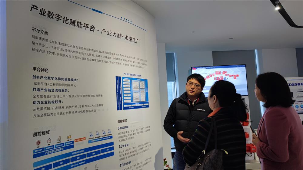 3月22日,在杭州湾智慧谷听取北大信息技术高等研究院蒋云执行院长介绍科技平台功能