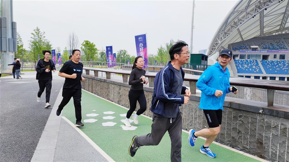 4月16日上午,商会郭一群、胡思新、厉锡平等会员在拱墅亚运公园长跑