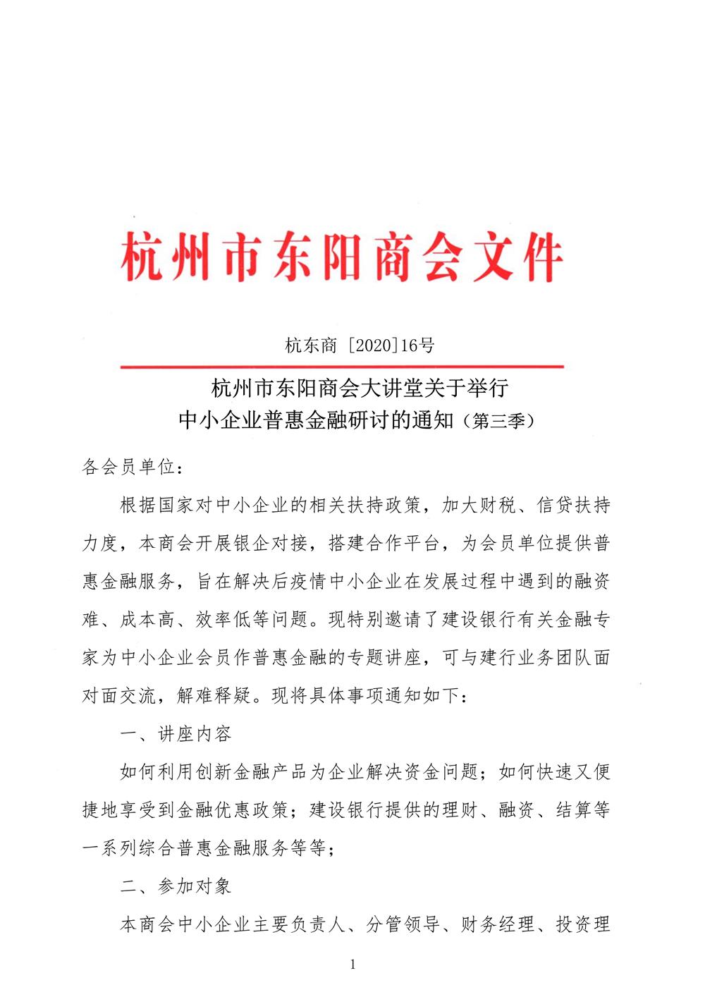 杭州市东阳商会大讲堂关于举行中小企业普惠金融研讨的通知(第三季)