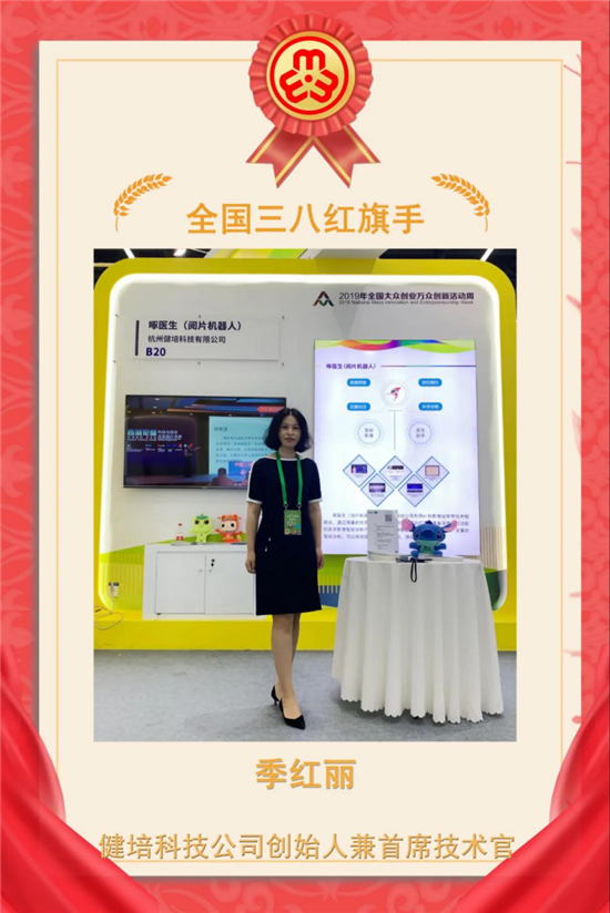 2019年度全国三八红旗手名单于10月24日公布,杭州市东阳商会会员企业浙江健培科技有限公司创始人兼首席技术官季红丽登上荣誉榜,可喜可贺!