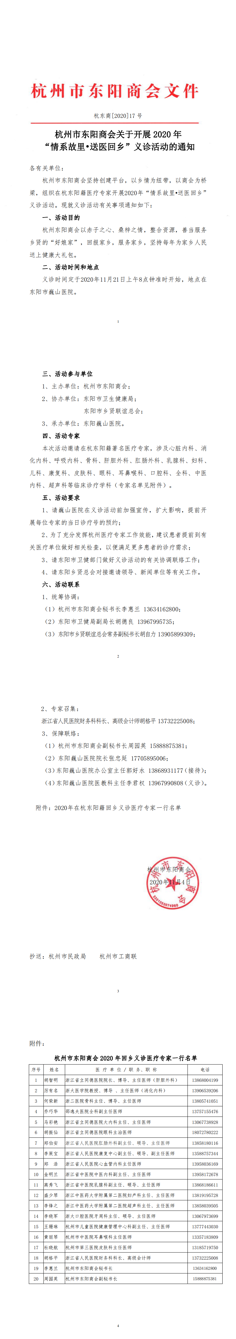 杭州市东阳商会关于开展2020年“情系故里·送医回乡”义诊活动的通知