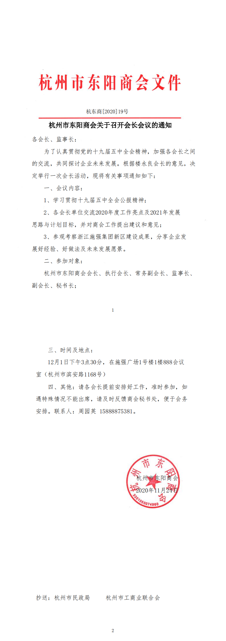 杭州市东阳商会关于召开会长会议的通知