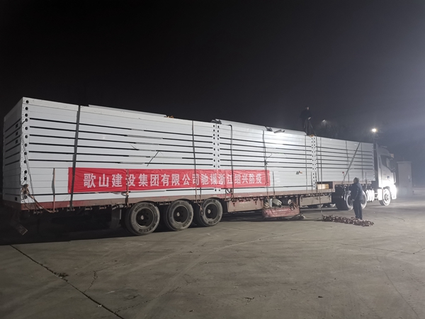12月15日,随着歌山建设集团总工蒋国伟一声令下,载有歌山集团驰援绍兴抗疫首批300余套价值400万元移动方舱的货车,火速驶往绍兴市,于16日上午抵达并投入使用。