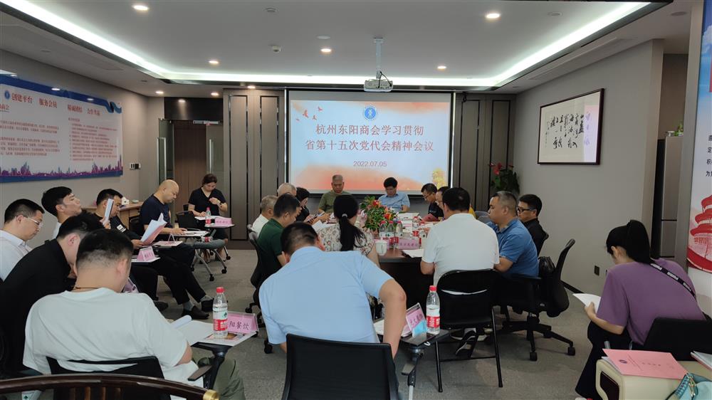 7月5日下午,杭州市东阳商会组织会员企业传达学习贯彻省第十五次党代会精神,与会人员人人参与,原原本本地认真通读了省第十五次党代会省委书记袁家军所作的大会报告,会议就全面学习宣传贯彻党代会精神提出希望要求。参加学习的有筑工科技、锦怡餐饮、光大装饰、鼎磊加固、海拓环境、绿驰景观、永控科技、恒科安装、东方龙建设、普华会计、国瑞税务、晶索建材、增强贸易、经纬天地、耀胜通信、岽阳餐饮、君豪装饰、鸿泉物联、海润建设、仁通材料、英普律所、橙幸科技等23家单位的主要负责人到会。会议由李惠兰主持。