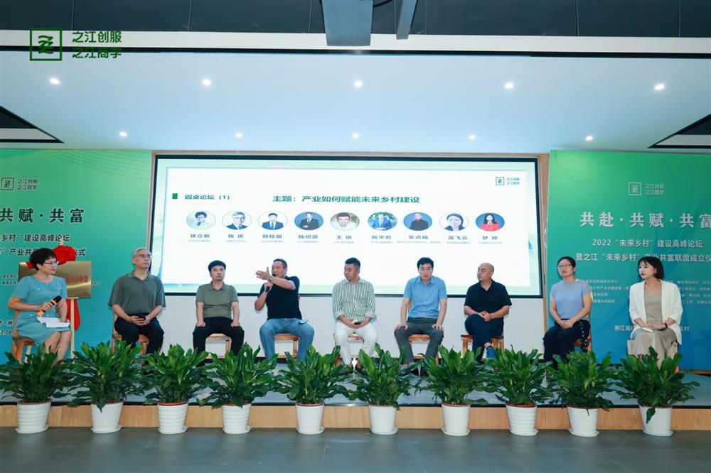 圆桌论坛环节,来自乡村振兴领域的多位专家学者,之江‘未来乡村’产业共富联盟发起企业代表,围绕产业如何赋能未来乡村建设、如何建设可持续发展的“未来乡村”等作了精彩的交流与分享。