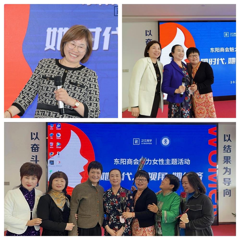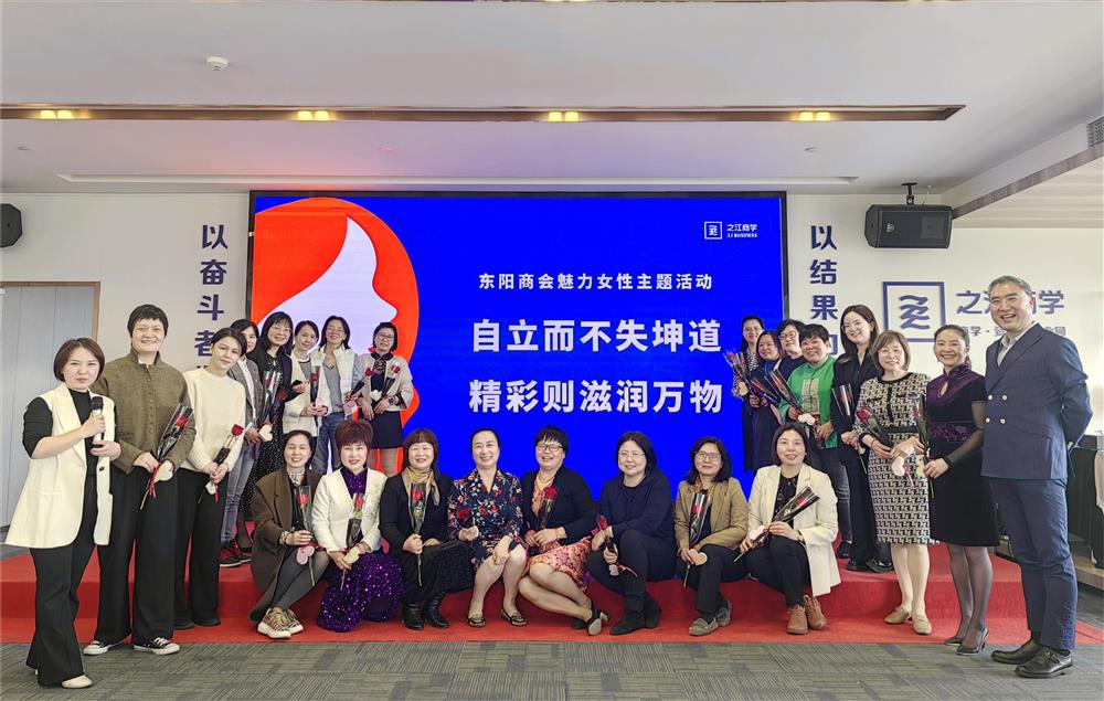 阳春布德泽,万物生光辉。在第113个“三八”国际妇女节来临之际,杭州市东阳商会为丰富女会员精神生活,充分展现女会员在新时代的奋斗之美,3月8日上午,举行了“她时代 她视角 她经济”庆“三八”主题活动。商会副会长、康客科技公司总经理朱美芳、乐仓电子商务公司总经理张俊、普华会计师事务所总经理潘巧燕、设维信息技术公司董事长张丽霞等20多位女会员参加,活动在之江商学举行。活动特别邀请了浙商杂志创始人、之江商学执行院长朱仁华、之江商学副院长、清华、浙大总裁班导师刘文标、之江百人会执行秘书长孙光英等出席,活动由商会秘书处李惠兰主持。