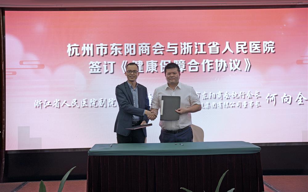 杭州东阳商会执行会长何向全与浙江省人民医院副院长涂建锋代表双方签订了“健康保障合作协议”。涂建锋副院长还介绍了医院基本情况及重点学科建设,并表示省人民医院今后为杭州市东阳商会在医疗卫生保健领域提供专家咨询、慢病管理、健康讲座、体检、义诊等服务,为企业家的健康和企业快速发展保驾护航;同时双方积极开展共建共享系列活动,发挥各自领域优势特点,促进相互交流。