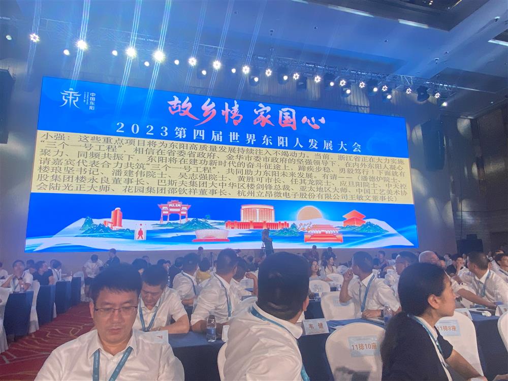 中秋佳节,乡情更浓。9月29日上午,2023第四届世界东阳人发展大会主旨大会在东阳天澜雷迪森广场酒店隆重召开,700余位来自五湖四海的乡贤嘉宾相聚在东阳江畔,共叙桑梓情谊、共谋发展大计、共话美好未来。杭州市东阳商会楼永良、胡建平、胡季强、俞蘠、虞陆平、傅东风、林韵强、吴跃、陆侨治、胡丹锋、楼金芳、姚军红等20多位企业家参会。