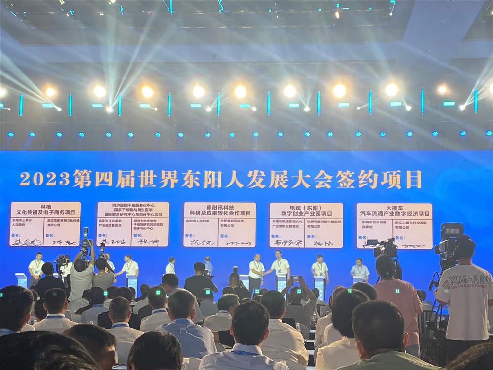 大抓项目、抓实项目是今年东阳市工作的总牵引,这次世界东阳人发展大会,又促进了一批项目回归。在集中签约项目中,杭州市东阳商会有三家企业的回乡投资项目在会场上签约,他们是杭州电魂网络科技股份有限公司的电魂(东阳)数字创业产业园项目、浙江华铁应急设备科技股份有限公司的华铁应急铝合金模具制造及销售项目、浙江大搜车科技发展有限公司的大搜车汽车流通产业数字经济项目。三位董事长胡建平、胡丹锋和姚军红用实际行动为建设美好家乡、助力东阳高质量发展表达了深深的拳拳赤子之心和浓浓的殷殷故乡之情,为杭东商反哺家乡事业增光添彩!