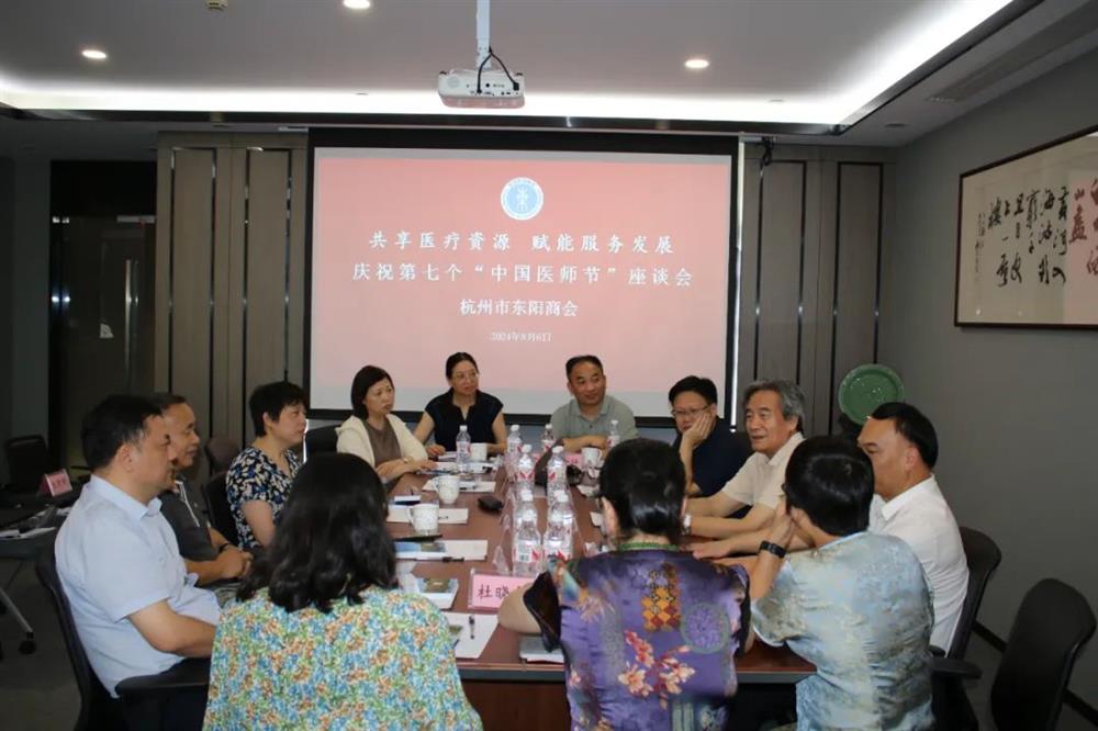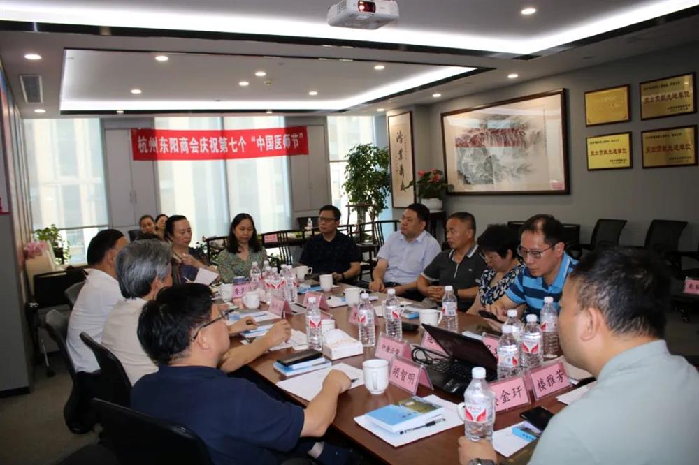 8月7日,杭州东阳商会在第七个“中国医师节”来临之际,特别邀请了浙大一院原副院长厉有名、省卫健委原体改处处长、二级巡视员申屠正荣,省医学会驻会副会长陆新成、省立同德医院院长胡智明、浙大妇院副院长陈新忠等在杭东阳籍省市医疗单位有关领导及专家代表20多人参加了座谈会,共同庆祝第七个“中国医师节”。