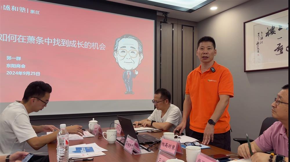 随后,常务副会长、浙江摩高服装科技有限公司董事长郭一群以《如何在萧条中找到成长的机会》为主题,给与会人员带来了一场精彩的分享。郭一群结合当前经济形势,特别是传统生产制造行业面临的困境,深入剖析了“企业如何在萧条中找到成长的机会”。他通过从“统一方向、形成合力;经费最小化、效率最大化;通过运营模式变革、人员架构调整,提升效率;把哲学转换成数字,开展以目标为基础的数字化经营;不断从事创造性的工作”等五个方面进行了阐述,为与会企业提供了宝贵的经验和启示。并结合实际案例,运用稻盛和夫经营哲学思想应对挑战、实现破局发展。他强调了员工第一,同甘共苦,使命共识;组织变革中重塑模式,提升效率;减员中提倡一人多岗,一职多用,培养全能;要求经营者必须读懂并熟练运用损益计算表的重要性,通过细致分析损益计算表中的各项数据,企业可以精准把控经营成本,提升运营效率,从而在激烈的市场竞争中立于不败之地。郭一群还分享了摩高服装科技有限公司在疫情来临,线下门店销售遇到瓶颈时应对挑战方面的成功经验。他表示,通过不断创新,如升级品牌形象、开展网红探店、设立休息区、手机免费充电等创新举措,摩高不仅有效提升了进店率和复购率,还实现了业绩的稳步增长。郭一群最后强调,经营者的不断学习、提升信心非常重要。东阳商会通过三年、五年、甚至十年坚持学习,我们的企业、我们的商会肯定与其他商会不一样。知行合一,形成合力,迭代创新,叠加创新,要与时俱进才能把企业做得更好,要直面困难,向新质生产力方向迈进,垂直攀登,破局发展。