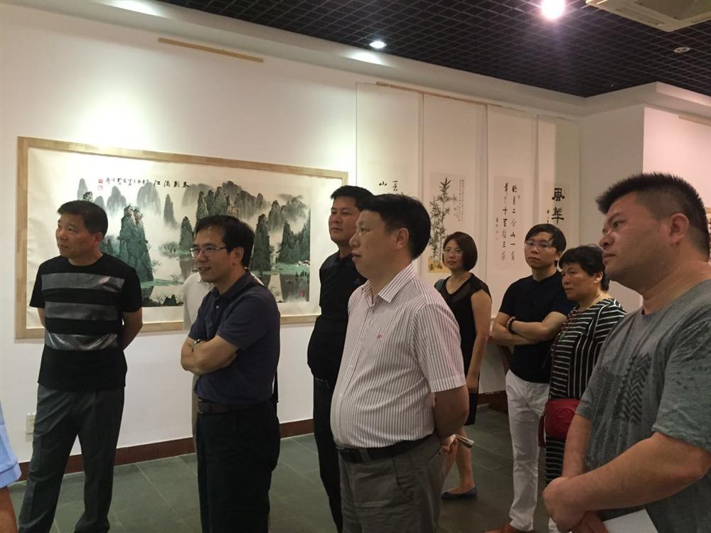 何宝其在给会长们介绍名人书画