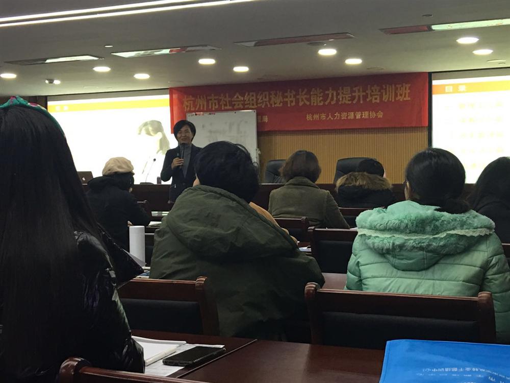 12月7日、14日,由杭州市社会组织管理局和杭州市人力资源管理协会共同举办的《社会组织秘书长能力提升》培训——提高班在杭州市人力社保综合楼举行。本商会秘书处参加了培训学习。