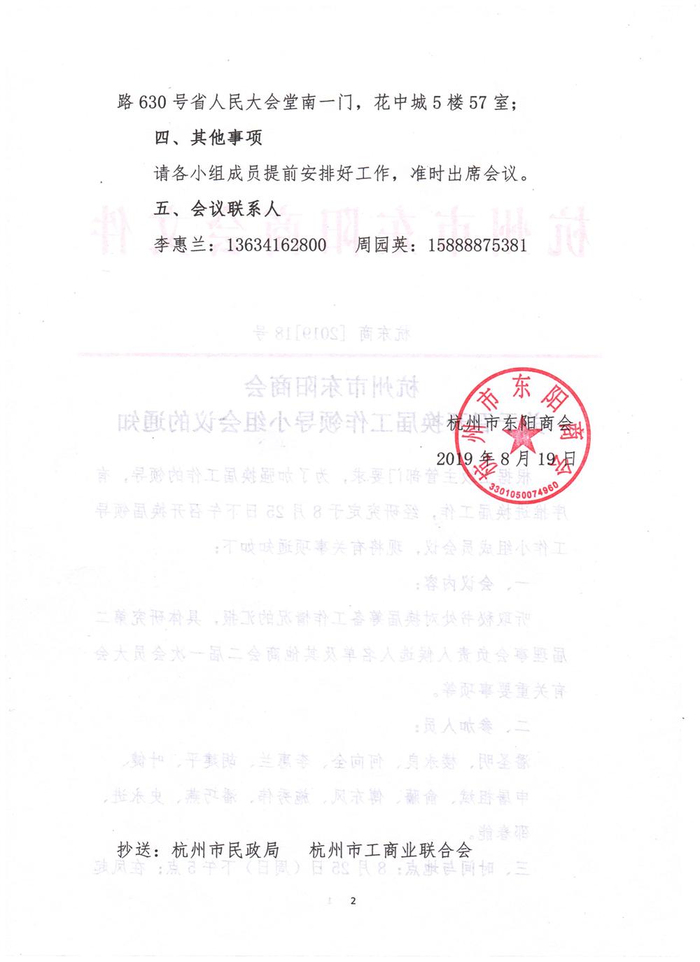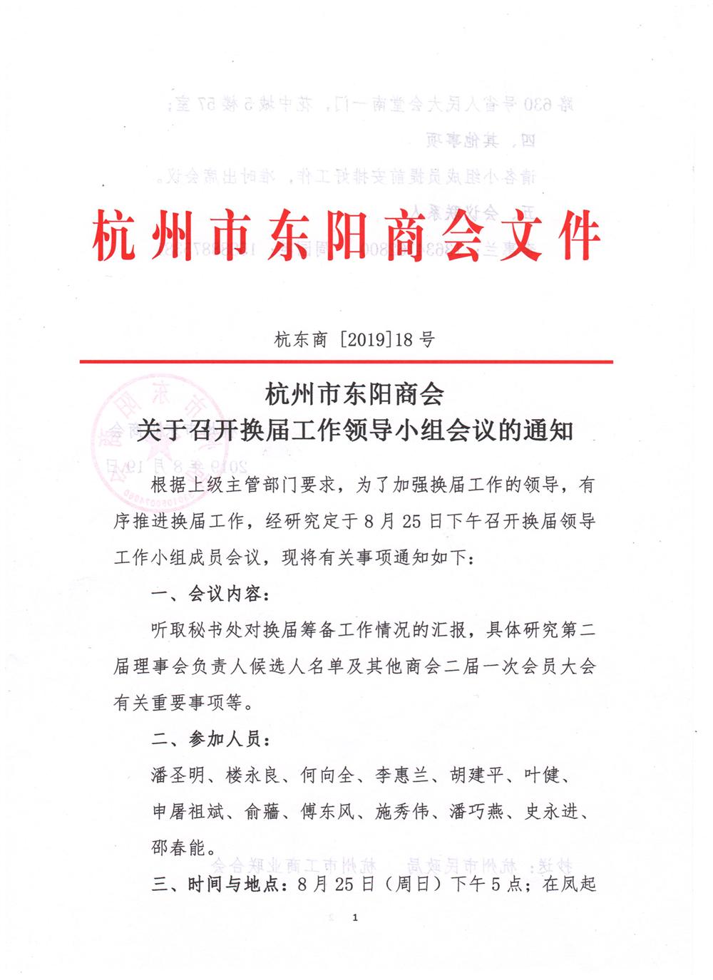 杭州市东阳商会关于召开换届工作领导小组会议的通知