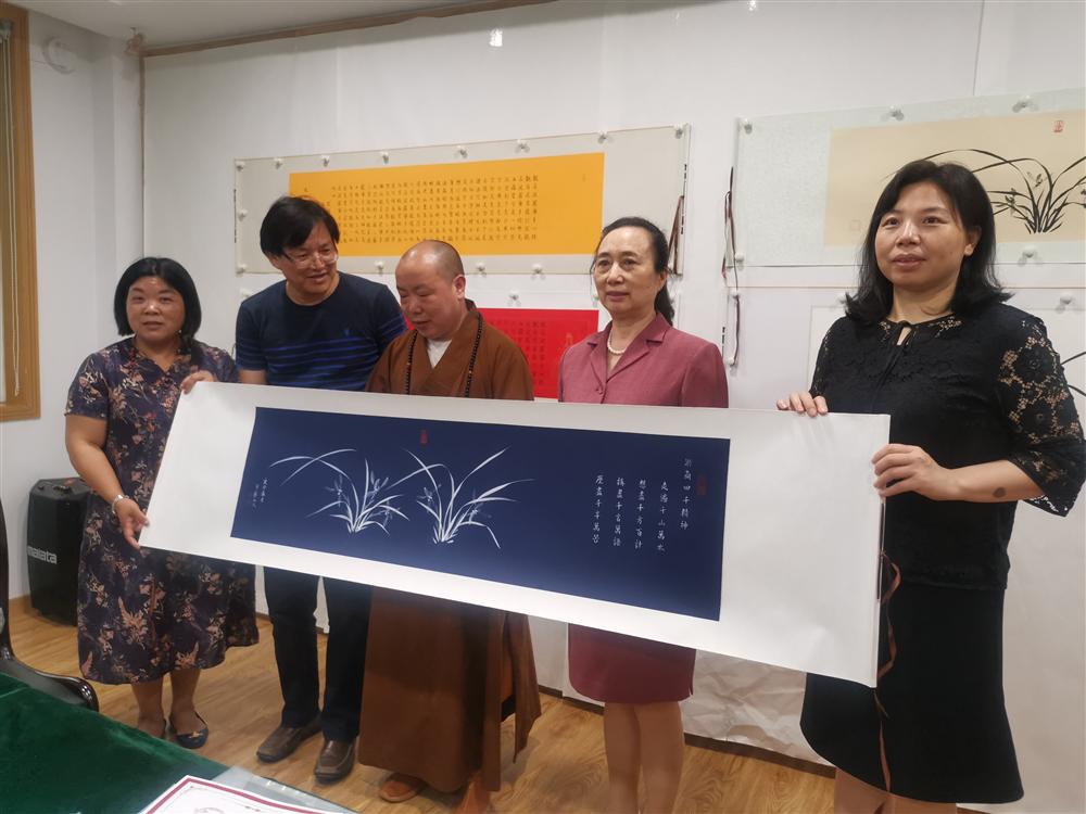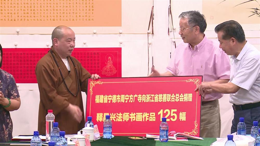 昌兴法师的想法很快得到了浙江省民政厅和省慈善联合总会的大力支持,省慈善联合总会秘书处精心筹备了本次捐赠仪式,使得昌兴法师创作的125幅作品如愿捐赠给积极抗疫、热心公益的省孝德文化促进会、浙商总会、杭州市东阳商会、华商大学等社会组织及企业家代表。